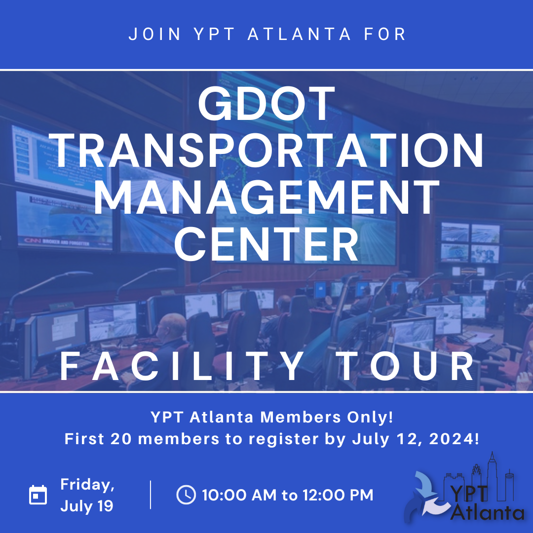 Join YPT Atlanta for a tour of the Georgia Department of Transportation's Transportation Management Center Facility! GDOT's TMC facility is the headquarters and information clearinghouse for the state's Intelligent Transportation System (ITS) and allows dispatchers to monitor real-time road conditions, manage incidents, and control traffic.